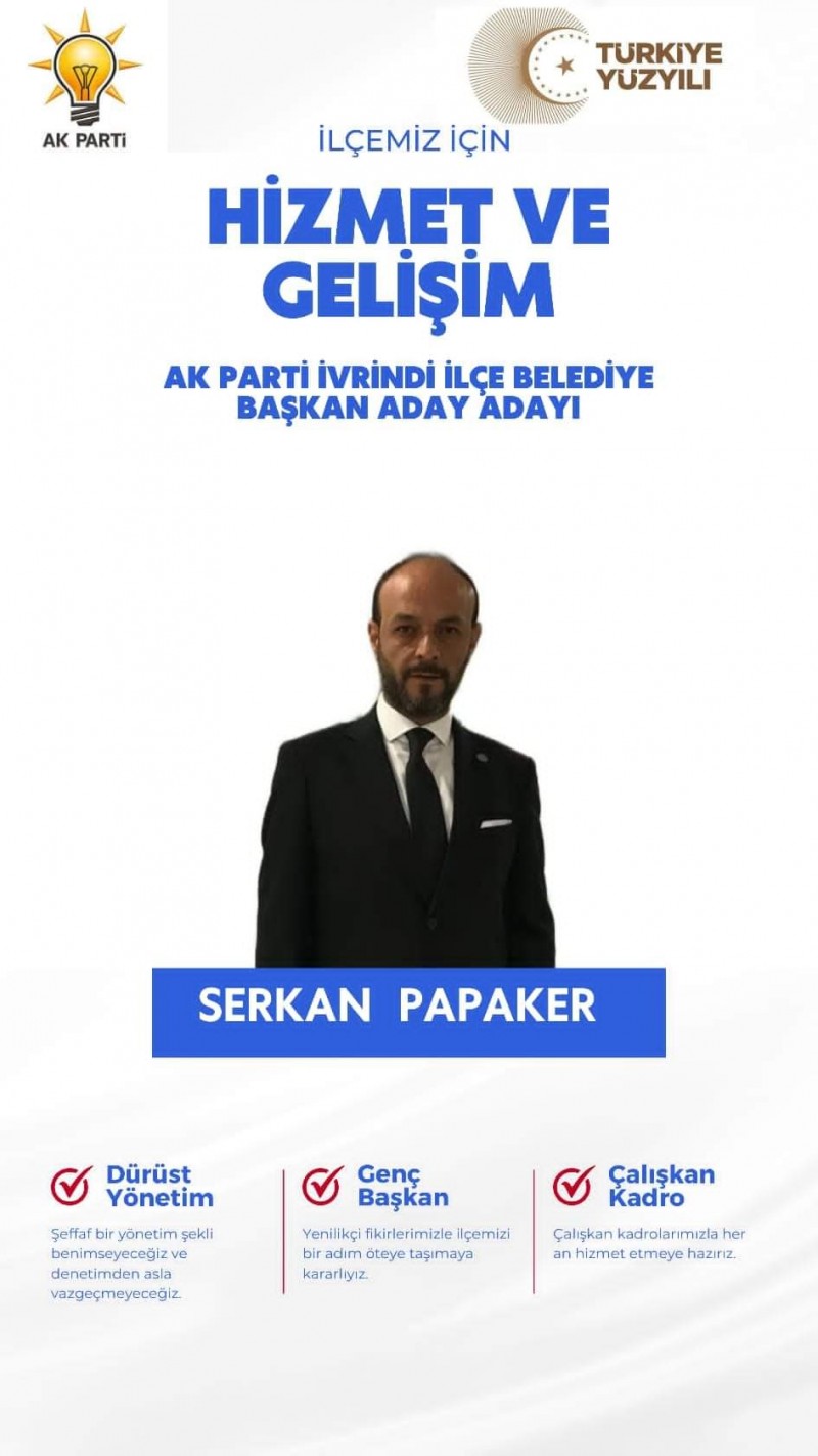 İvrindi’nin genç siyasetçisi Serkan Papaker AK Parti kadrosundan İvrindi Belediye Başkanlığına aday adayı oluyor.