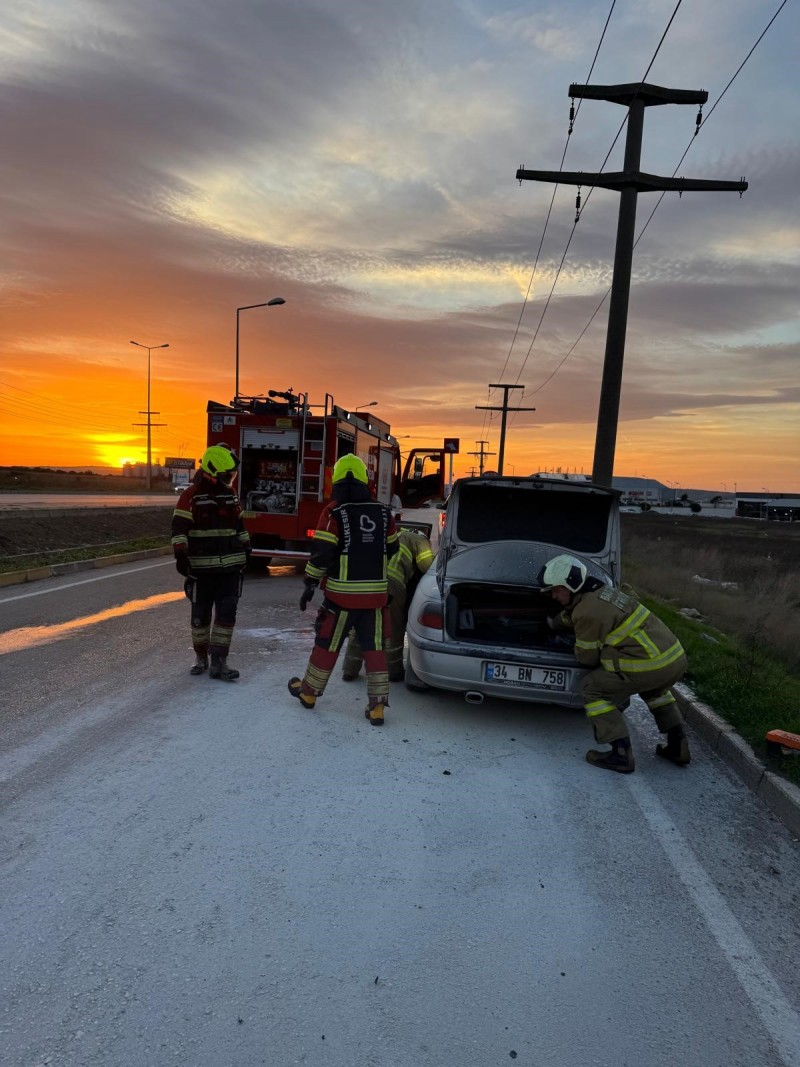 Olay, Bandırma ilçesi 600 Evler Mahallesi’nde meydana geldi. 34 BN 758 plakalı otomobilin motor kısmından yükselen dumanı fark eden sürücü, aracı hemen emniyet şeridine çekerek 112 Acil Çağrı Merkezi’ne bilgi verdi. Sürücünün kendi imkânlarıyla yaptığı ilk müdahale yetersiz kalınca, kısa sürede olay yerine intikal eden Balıkesir Büyükşehir Belediyesi Bandırma İtfaiye ekipleri, yangını başlangıç aşamasında kontrol altına alarak söndürdü.