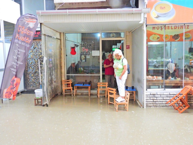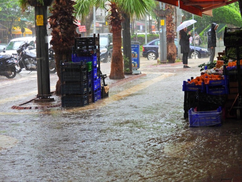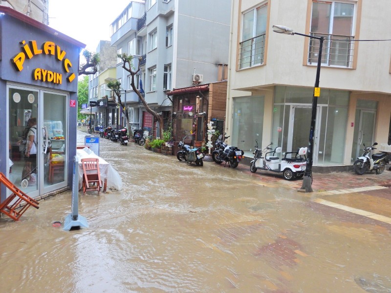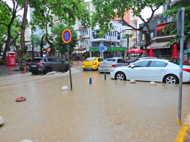 Erdek'te öğle saatlerinde aniden bastıran sağanak yağış vatandaşları hazırlıksız yakaladı. Dakikalar içinde, kent merkezinde hayat felç oldu. Özellikle Pazar Meydanı ve Hükümet Caddesi'nde büyük su birikintileri oluşurken, bazı iş yerlerini su bastı. Araç sürücüleri göle dönen yollarda ilerlemekte zorlandı. Yağışa hazırlıksız yakalanan bazı vatandaşların ise ayakkabılarına naylon poşet geçirdikleri görüldü. Yağışın etkisiyle, kentte hayat geçici bir süreliğine durma noktasına geldi.