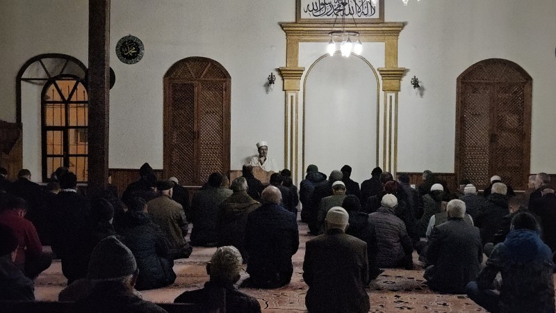 Şerif Paşa camiinde gerçekleşen sabah namazı buluşmasında Kur’an-ı Kerim tilaveti, vaaz, ilahiler ve tesbihat sonrası eller şehitler ve Gazze'deki insanlık dramı için semaya açıldı.