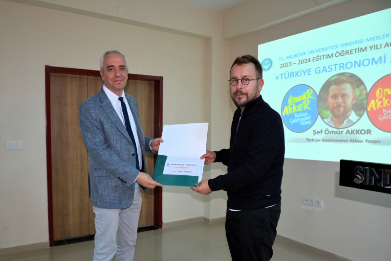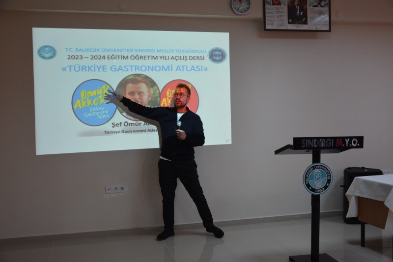 Türkiye Gastronomi Atlası'nı oluşturan Ömür Akkor, 2023-2024 yılının açılış dersinde öğrencilerle bir araya geldi. Sındırgı Meslek Yüksekokulu Konferans Salonu'nda gerçekleştirilen derste aşçılığın yalnızca yemek pişirmek olmadığı, bulunduğun coğrafyayı ve kültürü tanıyarak yöreye değer katmak ve geçmişle geleceğin bağlantısını da kurmak olduğu ön planda yer aldı. Gastronomi değerlerinin coğrafyaya göre değiştiği belirtildi. Öğrencilerin eğitimine önem veren her fırsatta alanında uzman kişileri de öğrencilerle buluşturan Sındırgı Meslek Yüksek Okulu, kariyer planlama etkinliklerini de sürdüreceğini belirtti.
