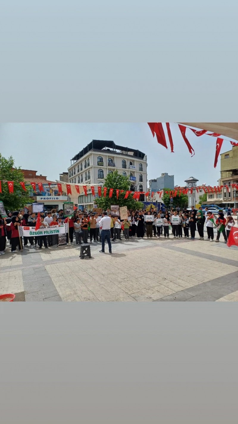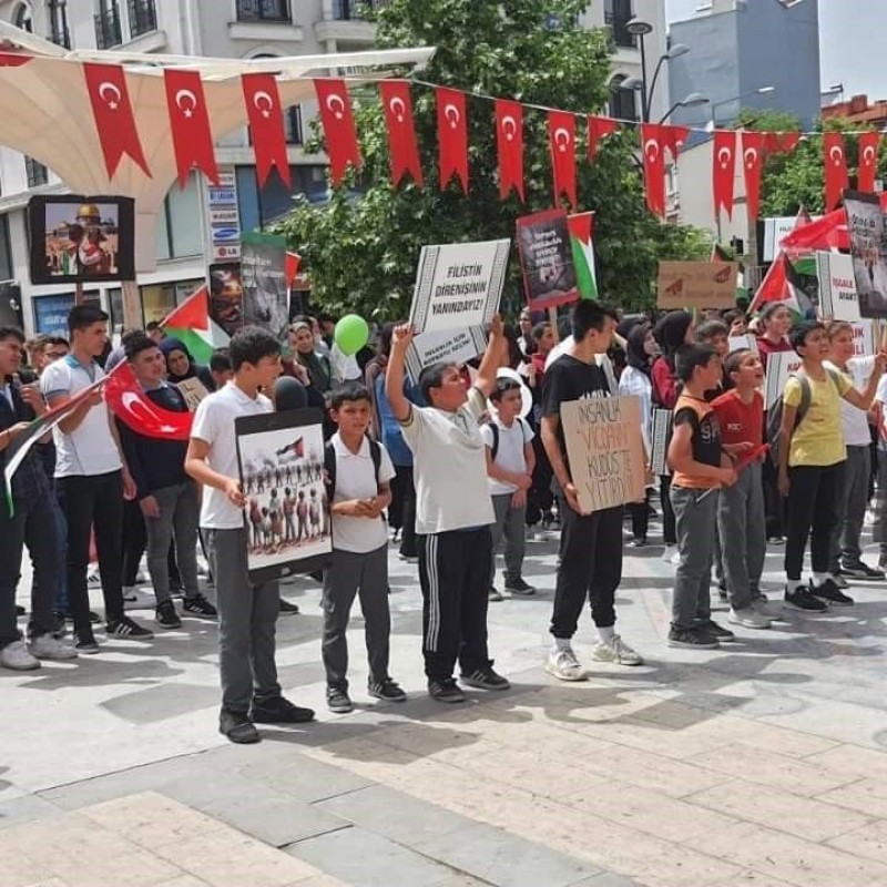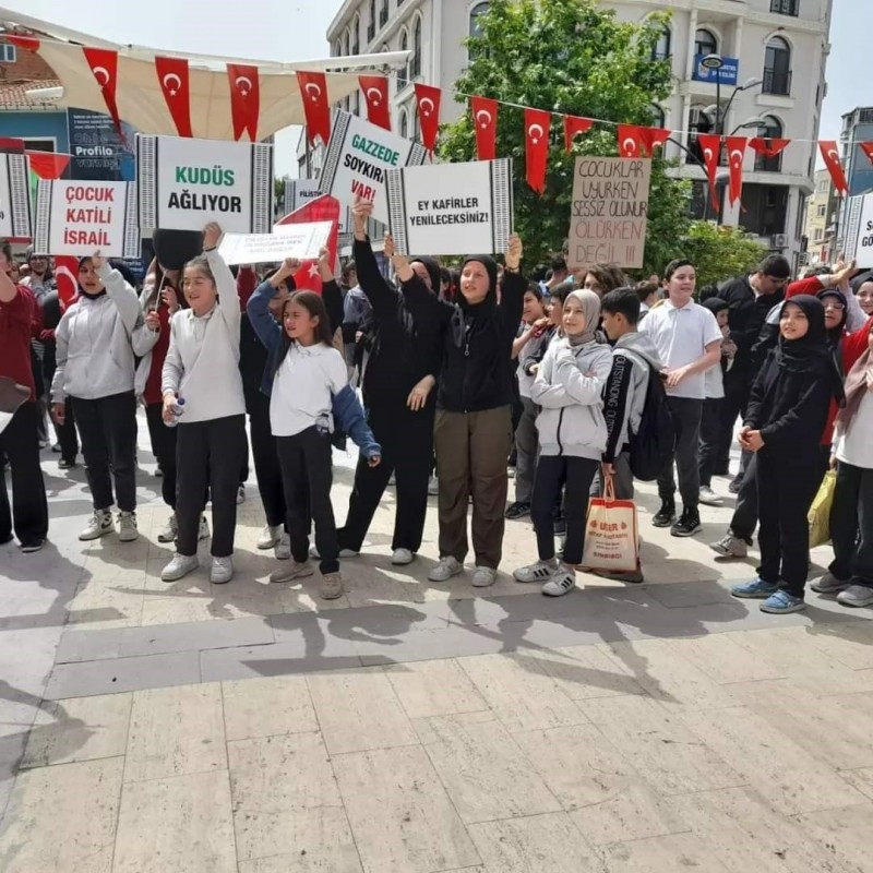 Öğrenciler hazırladıkları pankartlarla zulme dikkat çekmek, Filistin halkının yanında olduklarını belirtmek amacı ile yürüyüş gerçekleştirdi. Cumhuriyet Meydanında son bulan yürüyüş sonrası zulmü kınamak ve Filistin halkına destek olmak amacıyla bildiri okundu. Destsek için meydana gelen öğrenciler sık sık sloganlar atarak, İsrail'in Gazze'de uyguladığı zulmü telin ettiler. Eylem sonrası öğrenciler derslerine gitmek için sessizce okullarına geri döndüler.