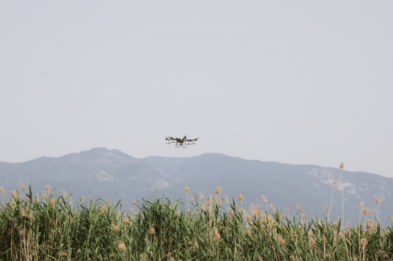 Balıkesir Büyükşehir Belediyesi ile birlikte gerçekleştirilen ortak çalışmada, sazlık alanlar drone ile ilaçlanıyor. Bu modern yöntem sayesinde, erişilmesi zor bölgeler de etkili bir şekilde ilaçlanarak sinek ve larva popülasyonu kontrol altına alınıyor. Kullanılan larvasit ilacının etki süresine göre periyodik olarak devam edecek olan bu çalışmalar, sineksiz bir yaz hedefiyle sürdürülüyor.
