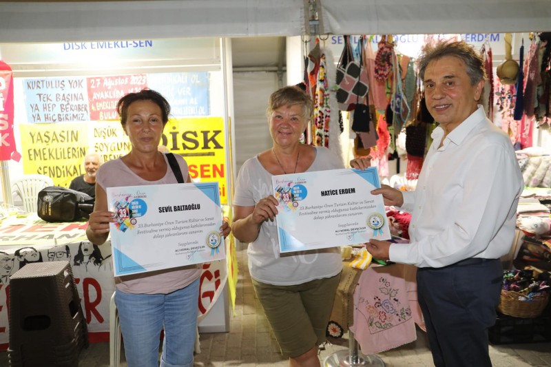 Zeytin çekirdeğinden yapılan takılar-tespihler, özel dikim kıyafetler, su kabağından ışıklı objeler, mum batik, resim ve minyatür sergisi, fotoğraf sergisi, özel tasarım takılar, el işi örgüler ve amigurumi oyuncaklar, cam sanatı ürünler, hat sanatı ürünler, el emeği maket uçaklar, seramik sanatı ürünleri ve daha bir çok değerli ürünün sergi ve satışının yapıldığı Ören Meydanı’ndaki stant alanı festival boyunca açık kaldı. (Haber Merkezi)