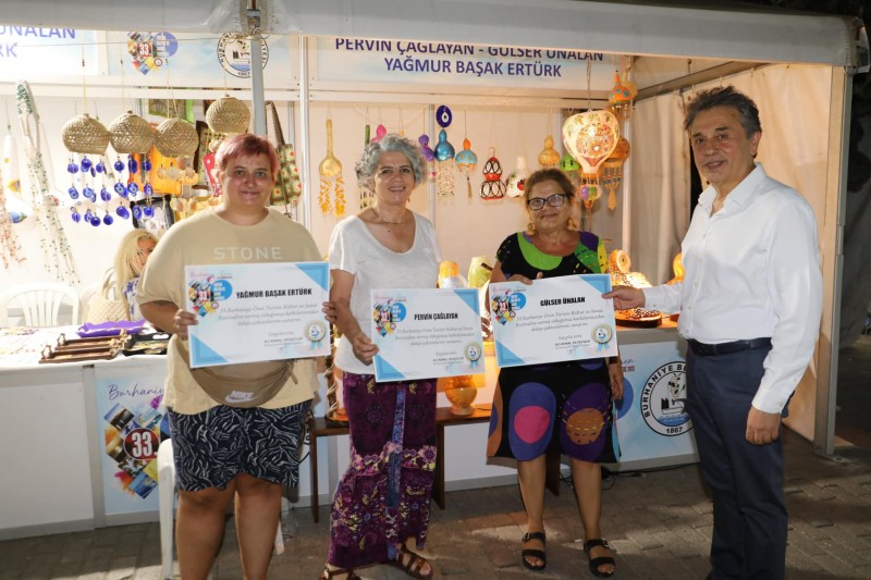 33. Burhaniye-Ören Turizm, Kültür ve Sanat Festivali kapsamında kurulan el emeği sergi ve satışlarının yapıldığı stantlara vatandaşların ilgisi yoğun oldu.