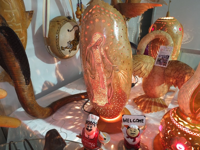 Burhaniye ilçesinde, Cevdet ve Hesna Ekmekçi çiftinin su kabağından yaptığı hayvan figürleri Ören Meydanı'nda görücüye çıktı.