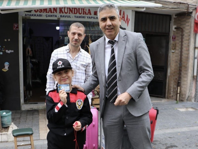 Balıkesir’in Bandırma ilçesinde polis kıyafeti giyerek araç sürücülerine emniyet kemeri taktıran 9 yaşındaki Elif’e fahri trafik dedektifi kimliği verildi.