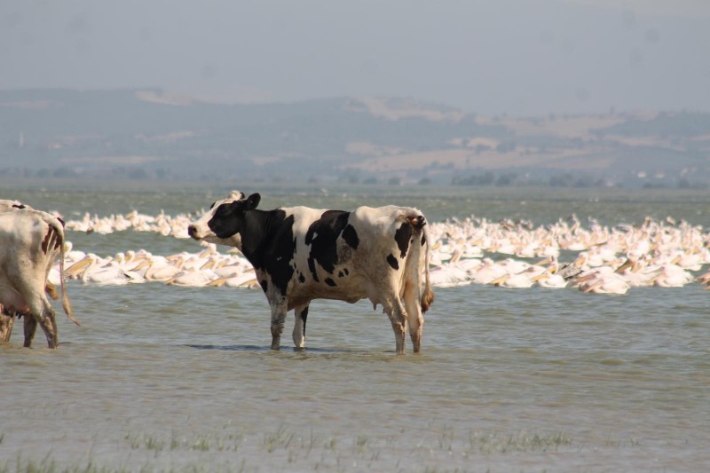 Manyas Süt Üreticileri Birlik Başkanı Fevzi Karakaş "Aşırı sıcaklar insanları olumsuz etkilediği gibi büyük , küçükbaş ve sokak hayvanlarımızı özellikle süt ineklerini aşırı etkiliyor ve süt verimlerini düşürüyor. Bu nedenle besicilerimizden imkanları olanlar Manyas Gölünde serinletirken, imkanı olmayanlar da farklı metotlarla serinletiyorlar,” dedi.