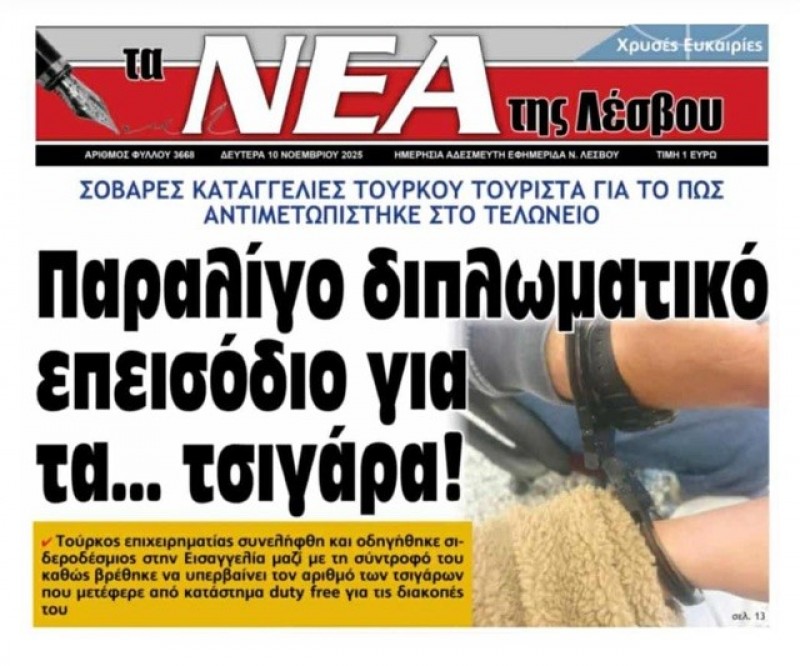 Midilli Adası Hudut Kapısı'nda; personeliyle birlikte Türk tatilcilerin valizlerini ve üst aramalarını yapan Gümrük Müdürü Katarina Apostolidou, Yoldaş çiftinin valizindeki 22 paket sigarayı gördü. Normalde 4 paket sigaraya izin verildiğini belirten Apostolidou, 18 paket sigaraya el koydu ve 1500 avro para cezası kesti. Bununla yetinmeyen Yunanlı Gümrük Müdürü, Yoldaş çiftini kelepçelenmesini sağlayarak gözaltına aldırdı ve polis eşliğinde nezarethaneye gönderdi.