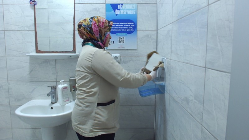 Yoğun şekilde kullanılan tuvaletlere konan afişlerde bulunan karekod okutularak tuvalette görülen aksaklıklar hastane personeline anında iletiliyor.