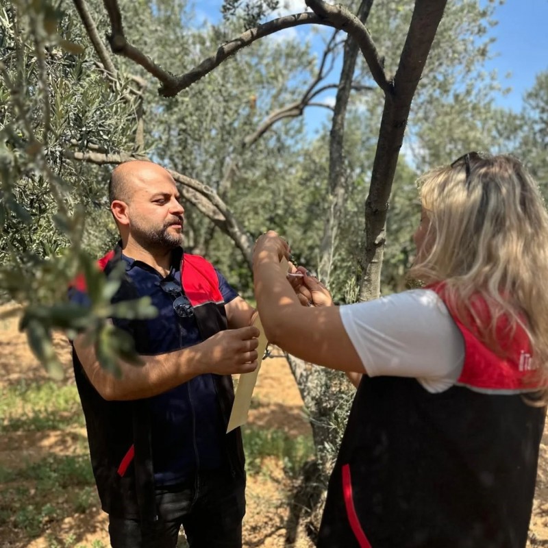 Edremit İlçe Tarım ve Orman Müdürlüğü, "İyi Tarım Uygulamaları Sertifikalı ve Entegre Mücadele ile Güvenilir Kaliteli Zeytin Üretme Projesi" kapsamında üreticilere destek olmaya devam ediyor. Bu çerçevede, İlçe Tarım ve Orman Müdürü Sabriye Akçay ve teknik personel, 10 zeytin üreticisinin bahçelerini ziyaret etti.