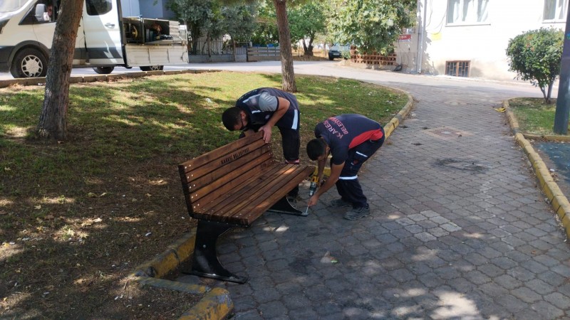 Yeşil alanların temizliğinin ve bakımının yanı sıra Karesi Belediyesi Park ve Bahçeler Müdürlüğü ekipleri parklarda da çocuk oyun grupları ve kent mobilyaları bakım, onarım ve yenileme çalışmalarını sürdürüyor. Parklar, okul ve cami bahçelerindeki çeşitli nedenlerle bozulan, kırılan çocuk oyun grubu ve kent mobilyalarının tamir ve bakımını yapan ekipler, fonksiyonelliğini yitirmiş kent mobilyalarını ise çağdaş şehircilik anlayışı ile yapılmış yeni kent mobilyaları ile değiştiriyor.