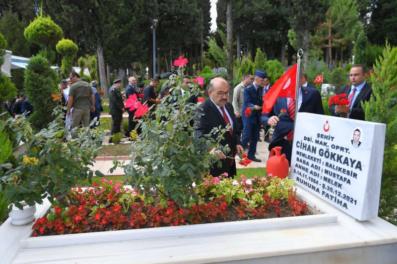 Vali İsmail Ustaoğlu kutlama programı kapsamında daha sonra Balıkesir Şehitliğini ziyaret etti. Şehitlikte bulunan aileler ile bir araya gelen Ustaoğlu, dualarla anılan şehitlerin ailelerine bir kez daha sabır diledi.