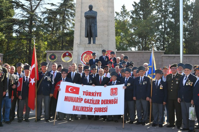 Saygı Duruşu ve İstiklal Marşı'nın okunmasıyla başlayan çelenk sunma töreninde günün anlam ve önemine ilişkin konuşmayı Türkiye Muharip Gaziler Derneği Balıkesir Şubesi Başkanı Hulusi Karakuz yaptı. Mustafa Kemal Atatürk ve arkadaşlarının önderliğinde yürütülen hürriyet ve bağımsızlık mücadelesinin kıvılcımdan alev topuna dönüşerek zafere ulaştığını ifade eden Karakuz, “19 Eylül Gaziler Günü aziz vatanımızın bağımsızlığı bekası uğrunda muharebe meydanlarında canlarını ortaya koyarak savaşan fedakar, kahraman gazilerimizin şeref ve kahramanlık günüdür. Gaziler Gününü kutlamanın gurur ve heyecanı içindeyiz.” şeklinde konuştu.