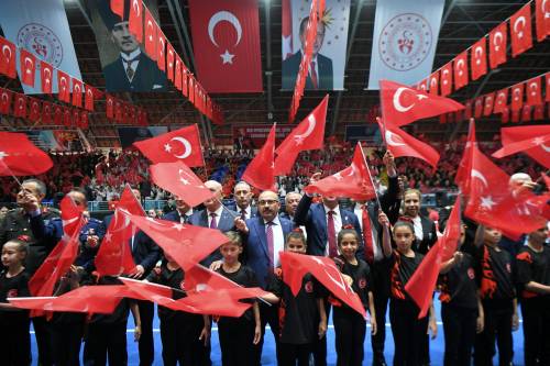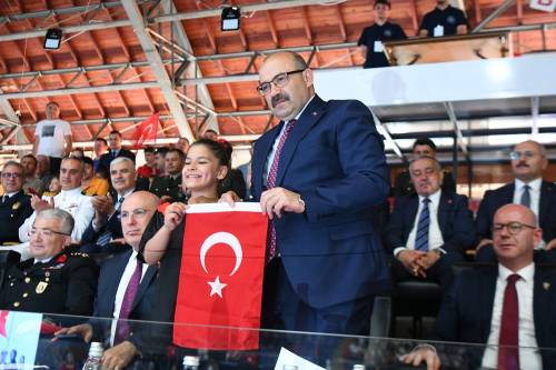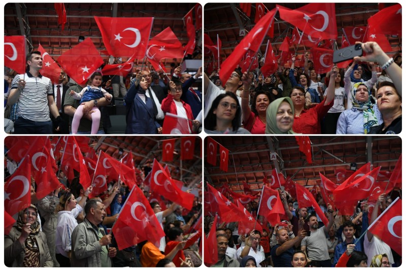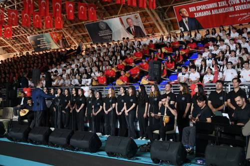 Programda Balıkesirli milli sporcuların sahneye çıkmasıyla hep bir ağızdan söylenen "Bu Bayrak" isimli şarkıya tüm salon Türk Bayraklarıyla eşlik ettiler.