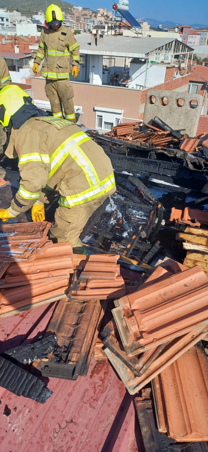 Edremit’te 3 katlı binanın çatısında çıkan yangına itfaiye ekipleri müdahale etti.