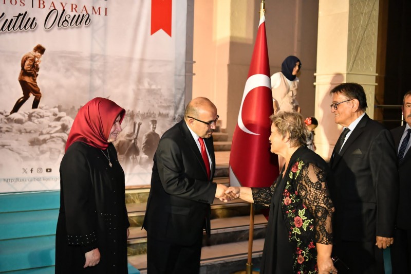 Vali Ustaoğlu, Balıkesir Valiliği bahçesinde gerçekleştirilen resepsiyona katılan misafirleriyle yakından ilgilendi. Ustaoğlu sporcu gençler, şehit ailesi ve gazi ile birlikte 30 Ağustos Zafer Bayramı'nın 101’inci yılı anısına yapılan pastayı kesti.