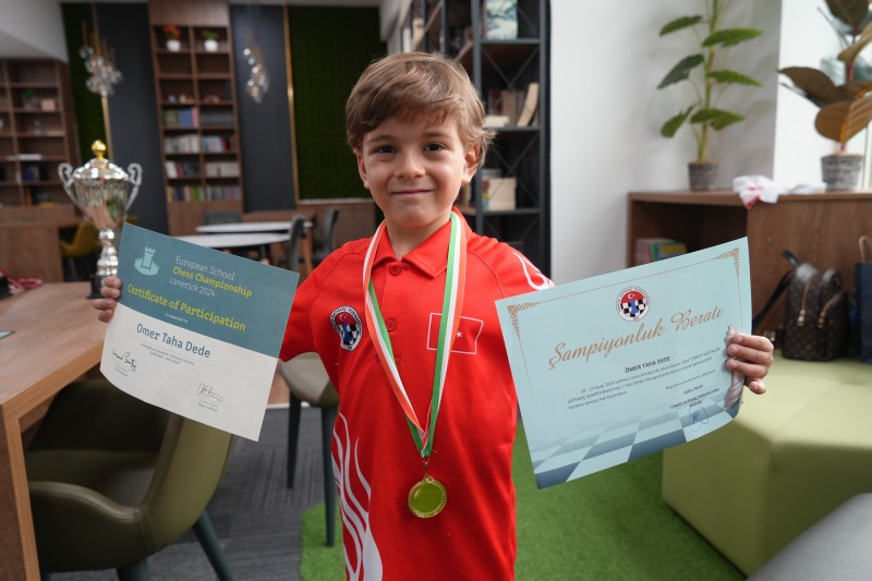 Balıkesir'de yaşayan 7 yaşındaki Ömer Taha Dede, İrlanda'da düzenlenen Okullar Arası Avrupa Satranç Şampiyonası'nda karşılaştığı 7 rakibini de yenerek Avrupa şampiyonu oldu. Madalyasını boynuna takan minik Taha Ömer, aynı zamanda 7'de 7 yaparak şampiyon olan ilk Türk sporcu olarak da kayıtlara geçti.