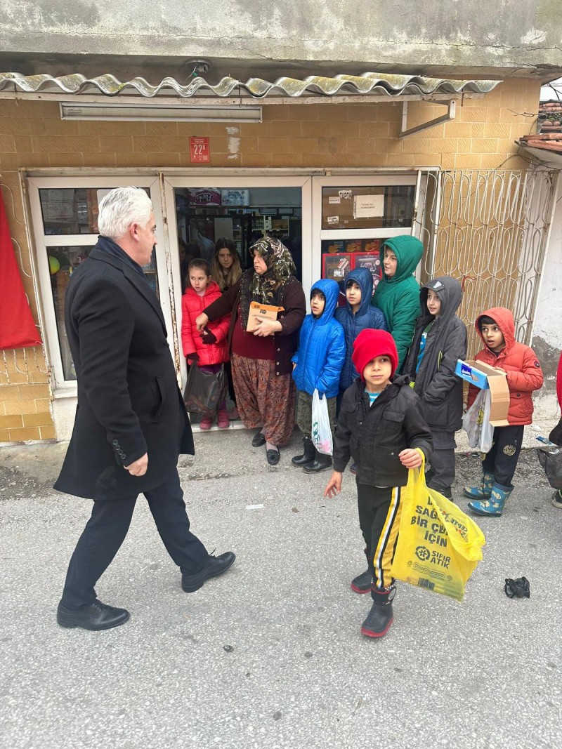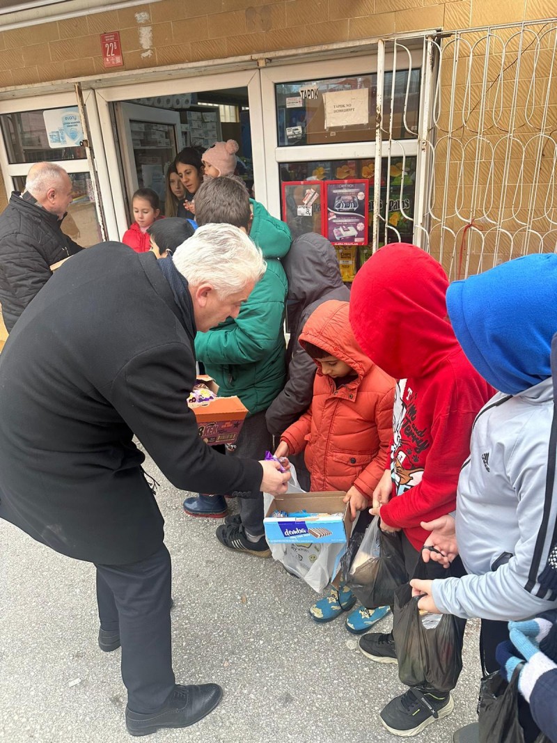Sakarya mahallesinde neşe bakkaliyesi önünde çocuklara gofret, çikolata, kek dağıtımı 70 yıldır devam ediyor.