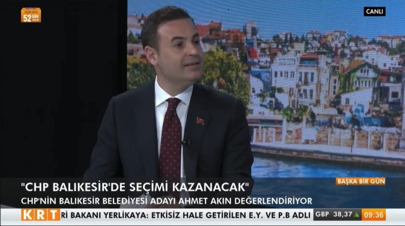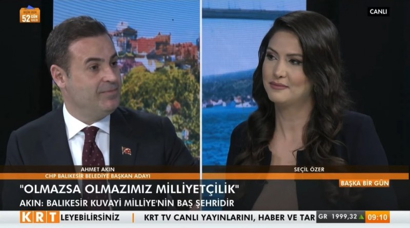 Balıkesir Büyükşehir Belediye Başkanı Ahmet Akın, KRT TV’de katıldığı TV programında Balıkesir’in gündemi gündemi ve şehre verdiği sözlerini Türkiye ve dünyanın şahitliğinde anlattı. Şehirde yaşayan 1 milyon 300 bin Balıkesirli’nin başkanı olacağını, tüm hizmetleri ve yardımları adaletli şekilde yapacağını vurgulayan CHP’li Akın’ın açıklamalarından başlıklar şöyle: