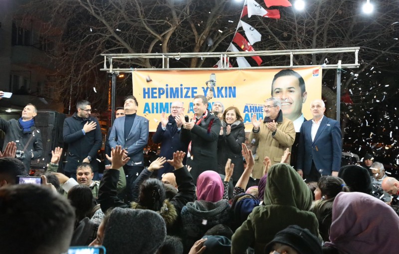 Balıkesir Büyükşehir Belediye Başkan Adayı Ahmet Akın, Balya ilçesindeki seçim koordinasyon merkezi açılışına katılıp Altıeylül Kasaplar Mahallesi’nde esnaf ziyareti yaptı. İşletmeleri tek tek ziyaret ederek esnafın sorunlarını dinleyen Akın, söz konusu sorunlara yönelik atacağı adımları anlattı. Akşam saatlerinde Gündoğan Mahallesi’ndeki halk buluşmasına katılan CHP’li Ahmet Akın, burada büyük coşkuyla karşılandı. Mahallenin girişinde davul zurnalar ve meşalelerle geceyi aydınlatan mahalleli gençlerin hazırladığı seremoniyi izleyen Ahmet Akın, seçim otobüsünden inip 1. ve 2. Gündoğan mahallelerinde yaşayan vatandaşlarla kucaklaştı. Halk buluşmasının gerçekleştirildiği alana yoğun kalabalık arasında, kortej eşliğinde giriş yapan Ahmet Akın’a tezahüratlar yapıldı. Akın’ın konuşması için sahneye çıktığı sırada konfeti ve havai fişek gösterisi düzenlendi.