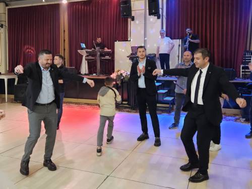 Aynı gece teşkilat, İl Yönetim Kurulu üyesi, Emin Şimşek’in yeğeni, Balıkesir Karesi ve Altıeylül İlçeleri Süt Üreticileri Birliği Başkanı Cihat Şimşek’in oğlu İlkay ile Gönül Sena çiftinin düğün merasimine katılarak mutluluklarına şahit oldular.