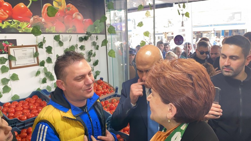İYİ Parti Genel Başkanı Meral Akşener, Balıkesir'in Gönen ilçesinde esnaf ziyareti yaptı. Kahvehanede vatandaşlarla konuşan Akşener, hayat pahalılığı ile ilgili şikayetleri dinledi. Büyükşehir ve Gönen belediyeleri için adaylarına oy isteyen Akşener, daha sonra girdiği bir iş yerinden alışveriş yaptı. Turşu ve sarma için asma yaprağı satın alan Akşener, ürünlerin parasını almak istemeyen esnafa parayı başında çevirerek 'bereketli olsun' temennisi ile bıraktı. Bir vatandaşın kahve ikramını kırmak istemeyen Akşener'in yardımına Büyükşehir Belediye Başkanı Adayı Turhan Çömez yetişti ve seçime kadar kahve içmeye geleceğine dair söz verdi.