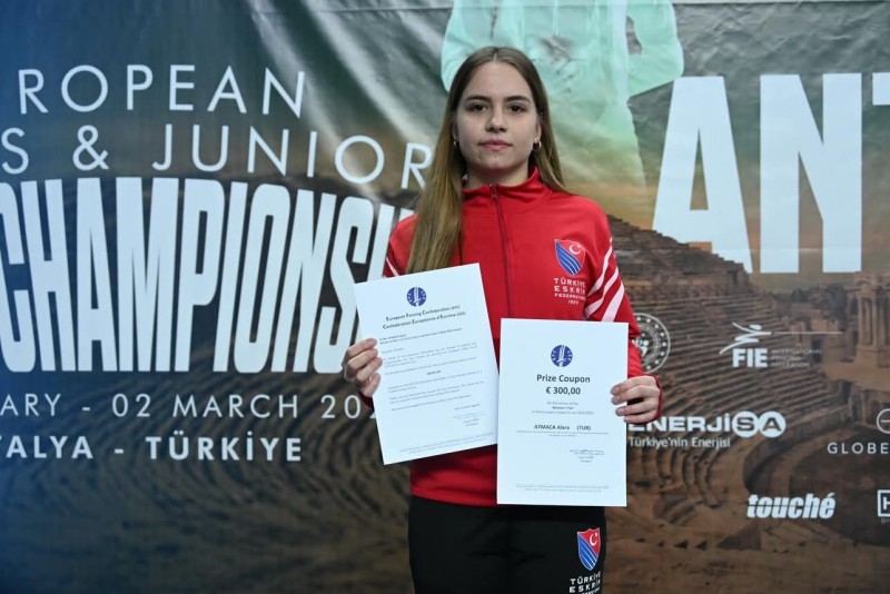 Antalya’da düzenlenen Yıldızlar ve Gençler Avrupa Şampiyonası’nda, Avrupa Şampiyonu olan Balıkesir Büyükşehir Belediyespor’un eskrimcisi Alara Atmaca, Avrupa Eskrim Konfederasyonu’nun (EFC) özel ödülü ile onurlandırıldı.