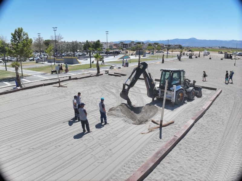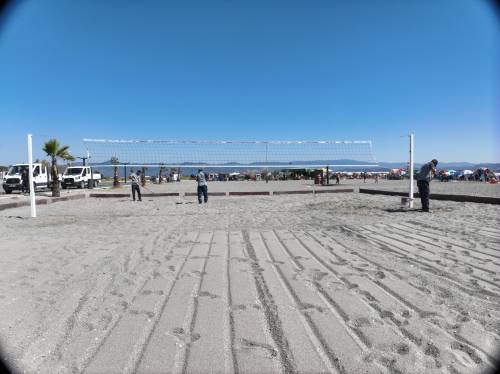 Balıkesir Büyükşehir Belediye Başkanı Ahmet Akın, halkın ihtiyaç ve taleplerine en hızlı şekilde cevap veriyor. Özellikle yazın nüfusu artan tatil bölgelerinde vatandaşların konforu ve rahatı için ekipleri seferber eden Başkan Akın öncülüğünde Edremit’in Altınkum Mahallesi’nde vatandaşların talep ettiği plaj voleybolu sahası oluşturuldu. Bölge halkının yazın hem serinlemesi hem de eğlenebilmesi için plaj voleybol sahalarını genişleten Büyükşehir Belediyesi’nin hizmet rotalarından biri de Altınkum oldu. Edremit ilçesinin Altınkum Mahallesinde gerçekleştirilen çalışmalar sonucunda sahile plaj voleybolu sahası tahsis edildi. Büyükşehir Belediyesi’nin hazırladığı voleybol sahasının ilk olarak sınırları çizildi. Daha sonra sınırları belirlenen saha takozlarla çevrildi. Akabinde file direkleri dikilen voleybol sahasının bakımları yapılarak saha tamamlandı.