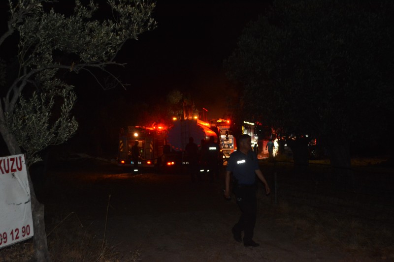Çiftliğin hemen yanındaki zeytinlik alanları tehdit eden yangına; Ayvalık İtfaiye Grup Amirliği bünyesindeki ekiplerin yanı sıra Ayvalık Belediyesi'nin su tankerleriyle müdahale edildi.