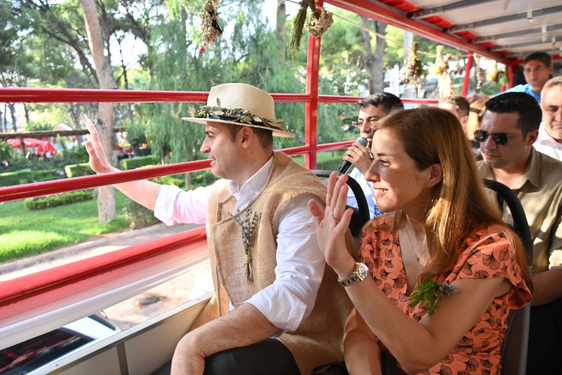 BAÇEM’de vatandaşlarla birlikte yılın ilk hasadını gerçekleştiren Balıkesir Büyükşehir Belediye Başkanı Ahmet Akın ile ilçe belediye başkanları hemen ardından üstü açık otobüslerle Burhaniye Belediyesi’nin önünden kortejin başlama noktasına kadar marşlar eşliğinde gitti. Burhaniye Belediyesi’nin önünde otobüslerden inerek traktörlere binen belediye başkanları, oradan Ören Meydanı’ndaki festival alanına kadar kortej halinde ilerledi. Festival alanında açılış konuşmalarına geçildi.