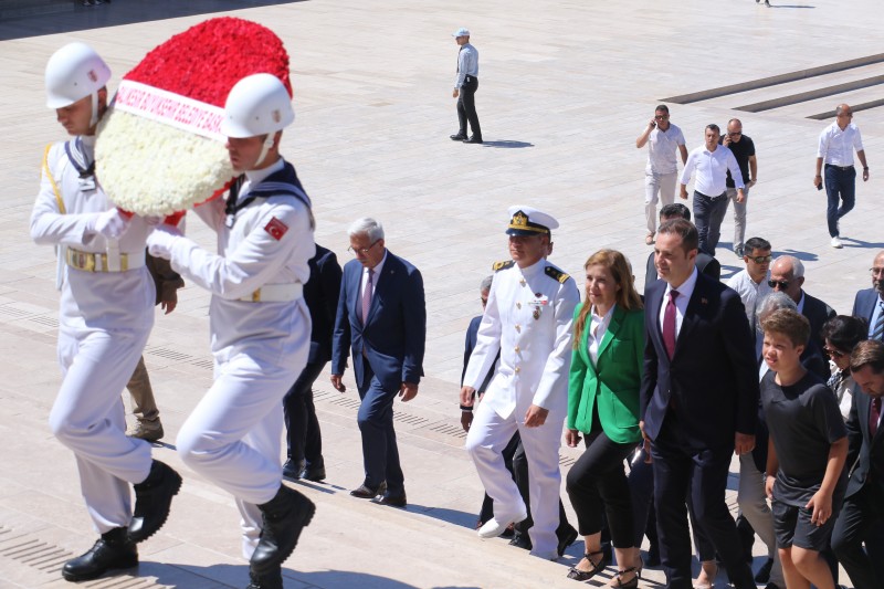 Balıkesir Büyükşehir Belediye Başkanı Ahmet Akın, beraberindeki belediye başkanları, meclis üyeleri ve milletvekilleriyle Anıtkabir’i ziyaret etti. Beraberindeki heyetle Aslanlı Yol'dan yürüyerek Gazi Mustafa Kemal Atatürk'ün mozolesine gelen Akın, çelenk bırakarak saygı duruşunda bulundu. Ardından hatıra fotoğrafı çektiren ve Misak-ı Milli Kulesi'ne geçen Akın ve beraberindeki heyet, Anıtkabir Özel Defteri'ni imzaladı.