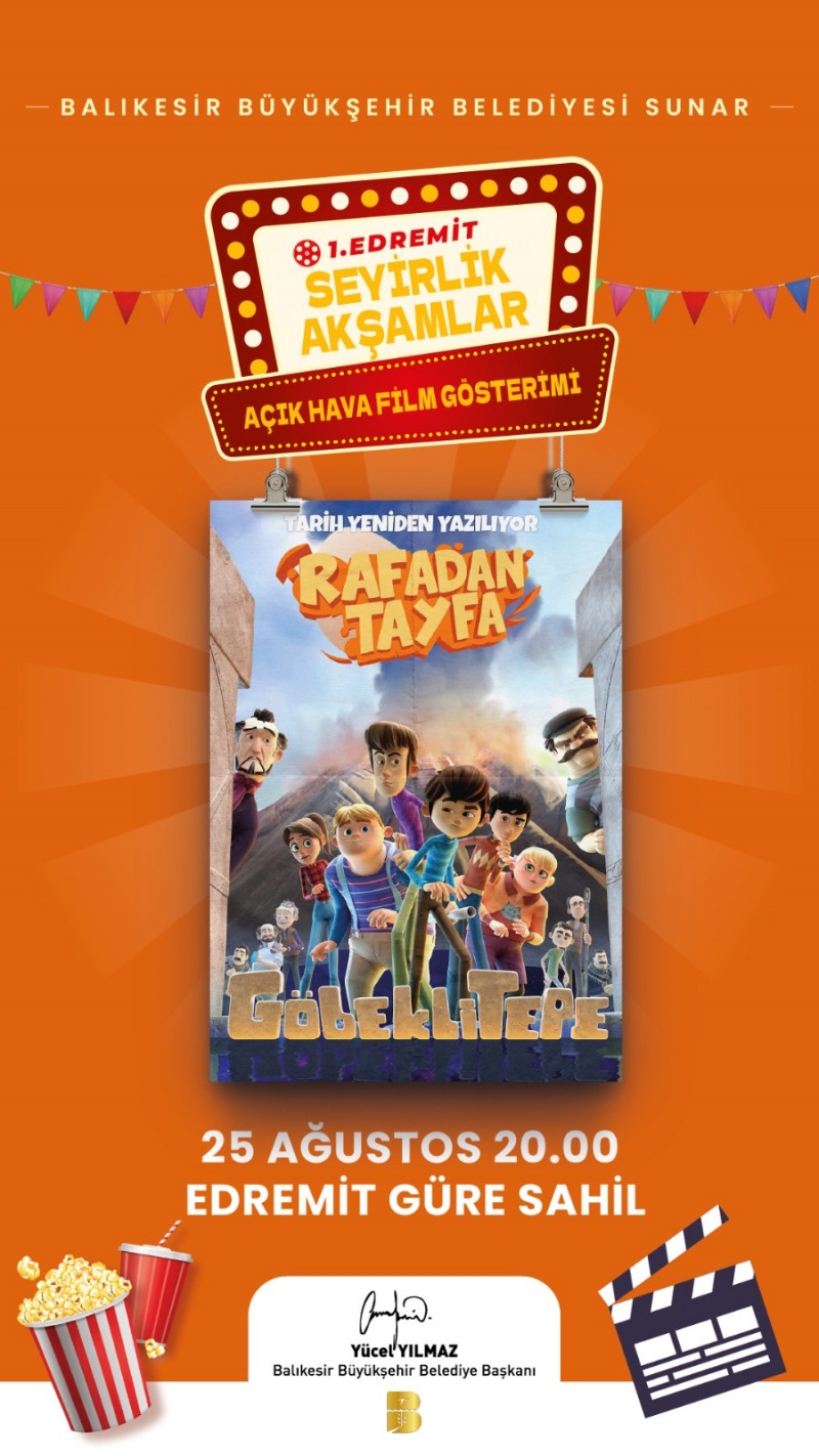 Balıkesir Büyükşehir Belediyesi, Bandırma’da başlattığı “Seyirlik Akşamlar” açık hava sinema etkinliğini bu yıl Edremit’te de gerçekleştirecek. Edremit Güre Sahili’nde bu yaz ilki düzenlenen etkinlik bugün (24 Ağustos) saat 20.00’de Burak Özçivit, Aslı Enver ve Murat Boz’un başrollerini paylaştığı “Kardeşim Benim” filmiyle başlıyor. Sinema günleri 25 Ağustos Cuma saat 20.00’de “Rafadan Tayfa” ile devam edecek.