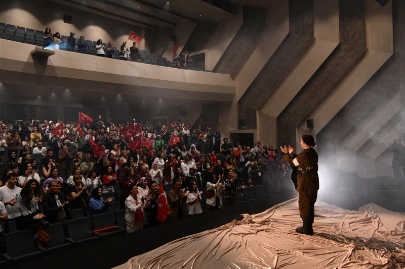 Cumhuriyet Bayramı’nın 100. Yılı kutlamaları kapsamında ayrıca Kurtuluş Savaşı’nda Anadolu kadınlarının göstermiş olduğu fedakârlıkların sergilendiği 'Kurtuluşun Kadınları' isimli tiyatro gösterimi yapıldı. Tek kişilik oyunda, Kurtuluş Savaşı’nın kadın kahramanları; Kara Fatma, Nezahat Onbaşı, Gördesli Makbule, Halide Edip Adıvar, Halime Çavuş, Şerife Bacı, Tayyar Rahmiye, Çete Ayşe Efe’nin fedakârlık dolu hikâyelerini anlatan başarılı oyuncu Ecem Yüksel, sahnedeki performansıyla izleyicilerden tam not aldı. Oyun, izleyenler tarafından ayakta alkışlandı. (Balıkesir Büyükşehir Belediyesi)
