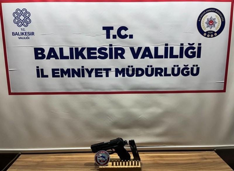 Balıkesir İl Emniyet Müdürlüğü Asayiş Şube Müdürlüğü ekipleri genel güvenliği ve asayişi sağlamak amacıyla Ayvalık, Bandırma, Burhaniye, Edremit, Erdek ve Susurluk ilçelerinde yapılan çalışmalarda çeşitli suçlardan aranan 15 şahıs gözaltına alınırken, adli makamlara sevk edilen 9 şahıs tutuklandı. Yapılan aramalarda, 2 adet ruhsatsız tabanca ve 9 adet fişek ve 1 adet ruhsatsız tüfek ele geçirildi. (İHA)