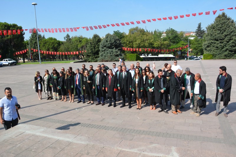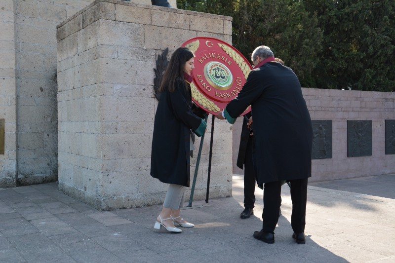 Balıkesir'de adli yıl açılışı nedeniyle düzenlenen törende Atatürk Anıtı'na Balıkesir Barosu çelenkleri sunuldu.