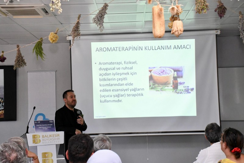 Tıbbi Onkoloji Uzmanı, Yazar ve Fitoterapist Prof. Dr. Canfeza Sezgin, Balıkesir 5. Aromaterapi Festivali kapsamında BAÇEM’de ‘Aromaterapinin Onkolojide Kullanımı’ adında bir seminer verdi. Seminere yoğun ilgi gösteren katılımcılar ilgiyle dinledi.