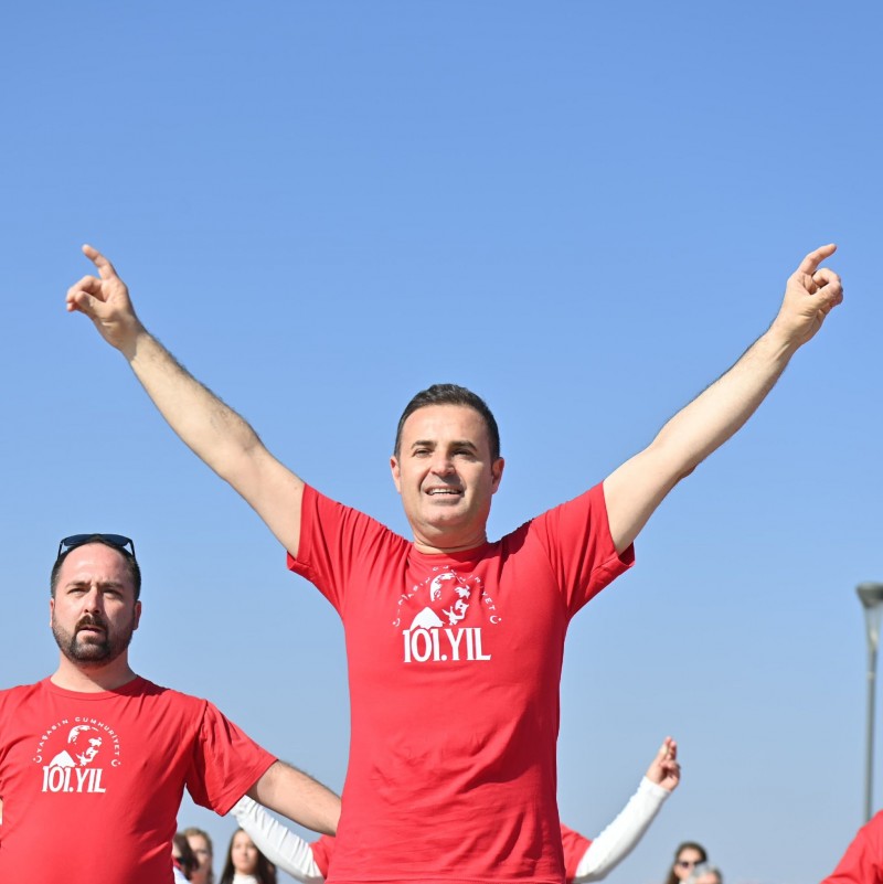 Tahir Gündoğan ise, “Cumhuriyet’imizin 101. yılı vesilesiyle halk oyunu oynayacağız. 7’den 70’e herkesle beraber. Çok sevinçliyiz. Cumhuriyetimizi Atatürk’e borçluyuz. Cumhuriyetimizin 101.yılı kutlu olsun” dedi.