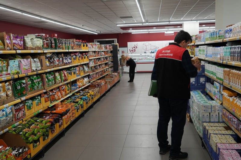 Balıkesir İl Tarım ve Orman Müdürlüğü ekipleri gıda denetimlerini artırdı. Kentte hizmet veren bir marketi denetleyen ekipler, süt, et, tavuk ürünlerinin son kullanma tarihlerini ve hijyen şartlarını kontrol etti.