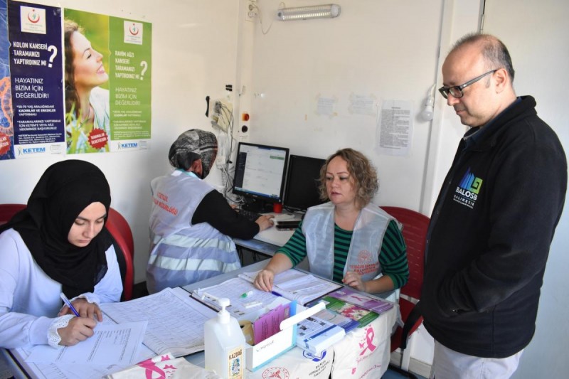 Balıkesir İl Sağlık Müdürlüğü, Balıkesir Organize Sanayi Bölgesi Müdürlüğü (BALOSB), Büyükşehir Belediye Başkanlığı ve Müdürlüğü iş birliği ile BALOSB’de faaliyet gösteren fabrikaların yetkililerine kanser taramaları hakkında bilgilendirmeler yapıldı. İl Sağlık Müdürlüğüne ait mobil kanser tarama tırı Ekim ayında BALOSB’de konuşlandırılarak tarama kriterlerine uyan çalışanların mamografi çekimleri yapıldı.