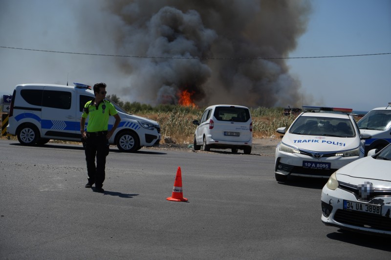 Balıkesir'in Edremit ilçesinde kuşların göç yolundaki sazlık alanda 3 ayrı noktada çıkan yangın, itfaiyenin müdahalesiyle yaklaşık 3 saatlik bir çalışma sonrasında kontrol altına alındı.