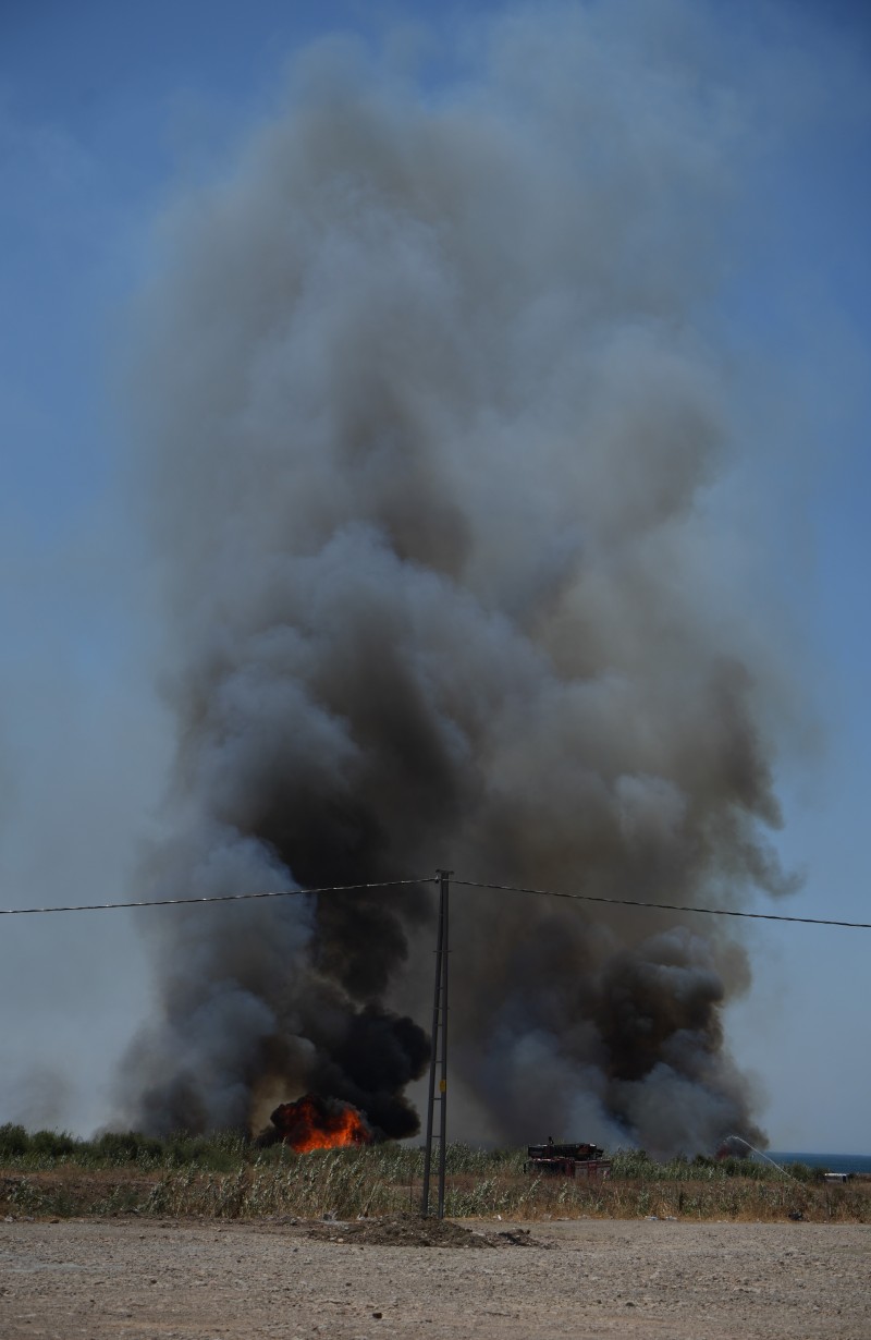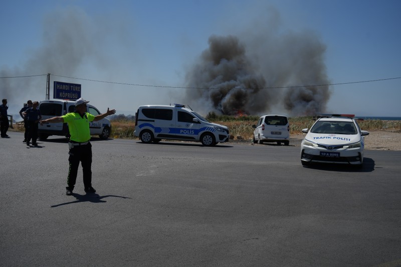 Altınkum Mahallesi Dalyan mevkiinde göçmen kuşların göç güzergahında bulunan denize yakın noktadaki sazlık alanda henüz belirlenemeyen bir nedenle 3 ayrı noktada yangın çıktı.