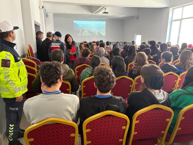Balıkesir İl Jandarma Komutanlığı tarafından, Şehit Öğretmen Şenay Aybüke Yalçın Anadolu Lisesi öğrencilerine yönelik bilgilendirme sunumu gerçekleştirildi.