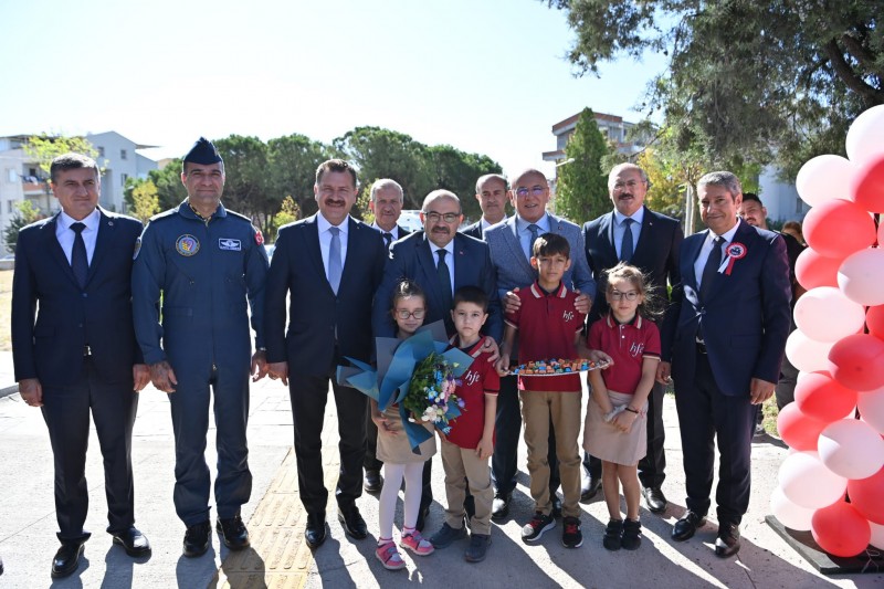 Törene Vali İsmail Ustaoğlu’nun yanı sıra Garnizon Komutanı Hava Pilot Tuğgeneral Cihangir Kemal Yüzçelik. Büyükşehir Belediye Başkanı Yücel Yılmaz, AK Parti Balıkesir Milletvekilleri İsmail Ok ve Mustafa Canbey ile il protokolü, öğretmenler, veliler ve öğrenciler katıldı. (Ebru Erdem)
