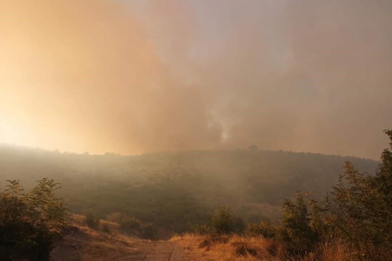 Balıkesir'in Altıeylül ilçesinde makilik alanda çıkan ve rüzgarın etkisiyle kısa sürede ormanlık alana sıçrayan yangına havadan ve karadan müdahale ediliyor.