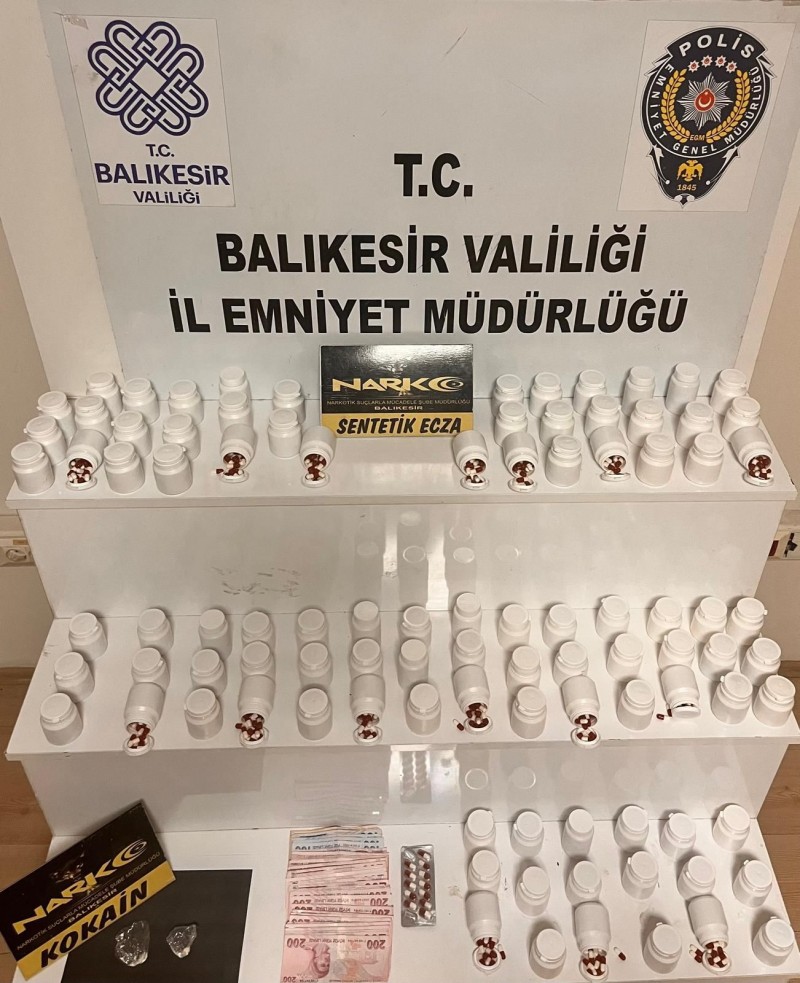 Balıkesir İl Emniyet Müdürlüğüne bağlı Narkotik Suçlarla Mücadele Şube Müdürlüğü ekipleri tarafında yapılan uyuşturucu operasyonunda 3 şüpheli şahısta yapılan aramalarda 5 bin 200 adet sentetik ecza hapı ve 0,96 gram kokain ele geçirdi. Operasyonda yakalanan 3 şahıs hakkında Uyuşturucu veya Uyarıcı Madde İmal ve Ticareti suçundan işlem başlatıldığı açıklandı.