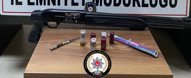 Balıkesir İl Emniyet Müdürlüğü Asayiş Şube ekipleri Balıkesir’in merkez ilçeleri olan Altıeylül ve Karesi ilçelerinde geçtiğimiz gün şüpheli şahıslar ve araçlara yönelik denetim gerçekleştirdi. Yapılan denetimde; bir şahıstan bir ruhsatsız tabanca ve 58 adet fişek, bir şahıstan bir kurusıkı tabanca, 2 şahıstan 2 pompalı tüfek ve 13 adet kartuş, bir şahıstan 12 Sentetik ecza malzemesi, bir şahıstan 2,70 gram metanfetamin maddesi, bir şahıstan 1,15 gram esrar maddesi ele geçirildi. Bin 822 şahıs sorgusunda ise 8 aranan şahıs yakalandı.