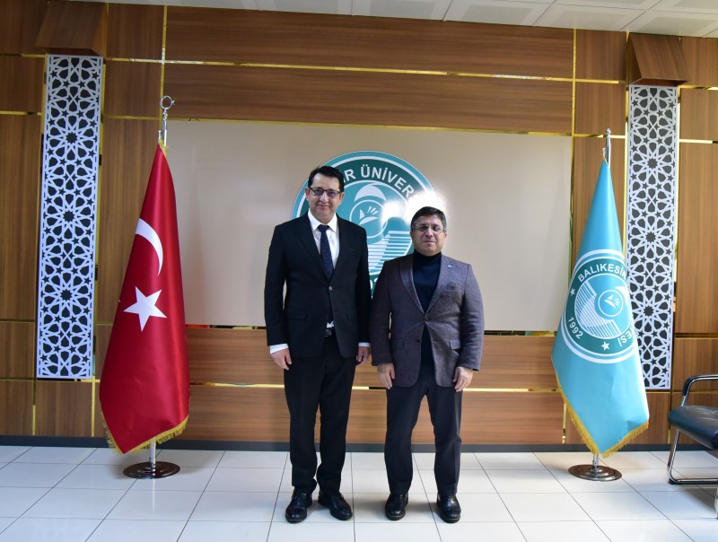 Vergi Haftası etkinlikleri kapsamında Balıkesir Defterdarı Serkan Mehmet Ersoy ve beraberindeki heyet, Balıkesir Üniversitesi Rektörü Prof. Dr. Yücel Oğurlu’yu makamında ziyaret etti.