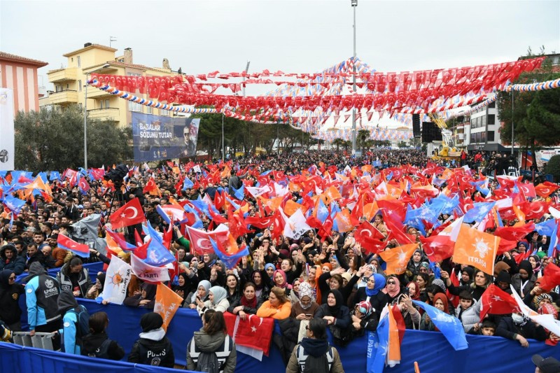 Tarihe damga vurmuş Balıkesirliler ile beraber olmaktan mutluluk duyduğunu vurgulayarak konuşmasına başlayan Cumhurbaşkanı Erdoğan, “Sizlerden 31 Mart seçimlerinde mutlaka yüzde 51'in üzerinde bir oy oranıyla Türkiye Yüzyılı Belediyeciliğinin yanında yer almanızı bekliyorum. Zorlu günlerin kahraman şehri Balıkesir'in Türkiye Yüzyılı'na omuz vereceğine inanıyorum. Balıkesir kendine yakışanı yapacaktır” diyerek Balıkesirlilerden destek istedi.