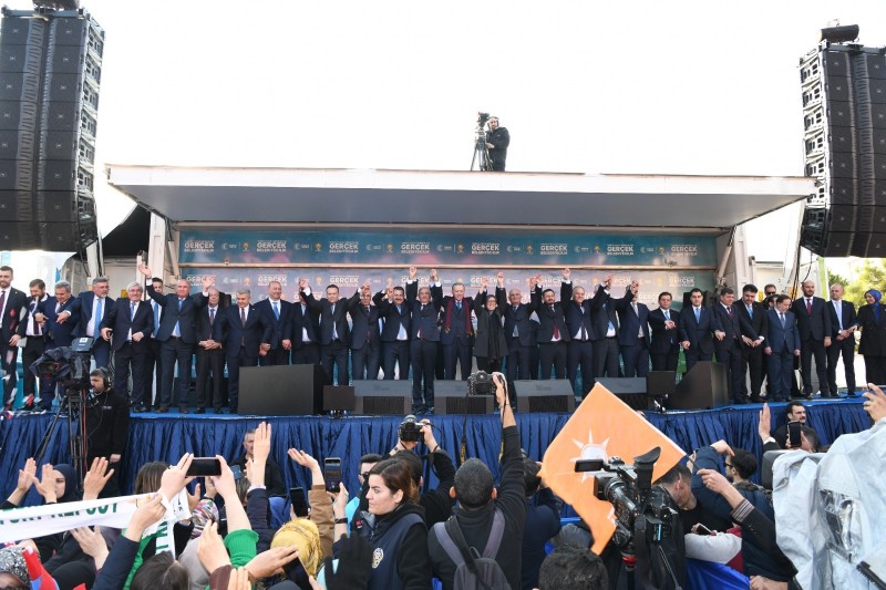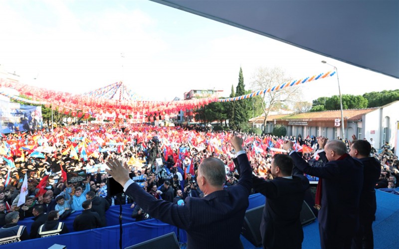 Erdoğan, "Balıkesir'in kimseye minnet borcu yok. Ama anlaşılan o ki; birileri Balıkesir üzerinden birbirlerine borçlanmışlar. Muhalefet cenahında her şey gizli kapaklı olduğu için kimin kiminle yürüdüğü, kimin kime borçlandığı tam bir muamma. Bugün alanda 85 bin kişi var. Balıkesir, bu oyunu bozacaktır" dedi. "Muhalefetin adayları sözlerinin yüzde 90'ını yerine getiremiyor" diyen Erdoğan, "Verdiğimiz kaynağı 2 kat artırdığımız halde engellendik yalanına sığınıyor. Bunlar eser ve hizmet engellidir. Gözleri de gönülleri de şehirlerinde değil" ifadelerini kullandı.